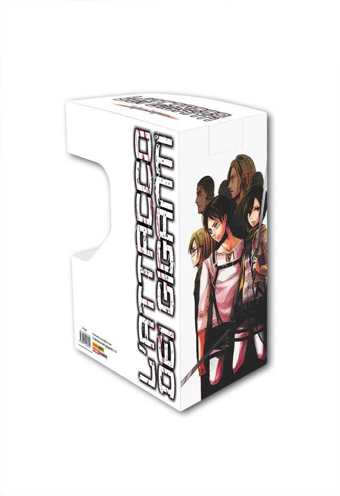 L’ATTACCO DEI GIGANTI È ORA DISPONIBILE ANCHE IN COFANETTO. NEL PRIMO COFANETTO VUOTO POTRETE RIPORRE I PRIMI CINQUE VOLUMI DELLA SAGA. La civiltà è quasi scomparsa a causa dei Giganti. L’umanità sopravvissuta si è rinchiusa all’interno di altissime e possenti fortificazioni. L’illusione di essere protetta svanisce il giorno in cui il Gigante Colossale distrugge le mura e compie una strage… IL MANGA DA CUI È TRATTO L’ANIME SU NETFLIX.